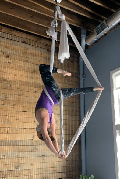Rachel continued to be an active member of the studio up until she became an instructor in July 2021, teaching beginner level Lyra classes and filling in occasionally for her fellow instructors.